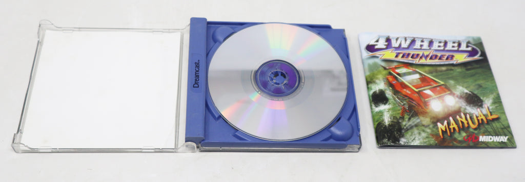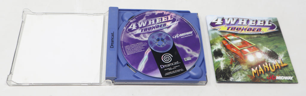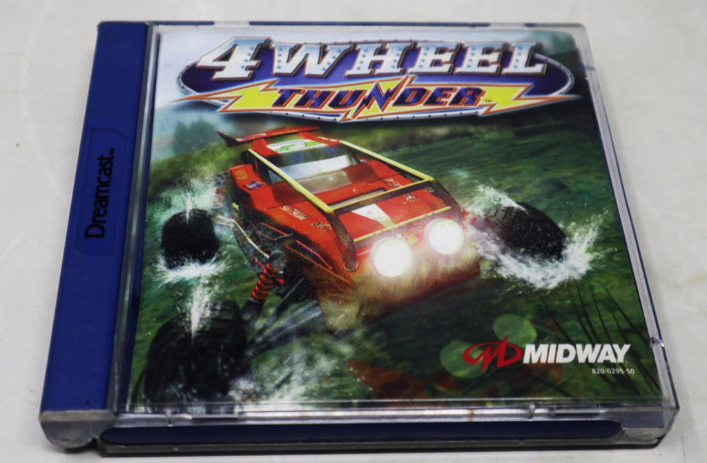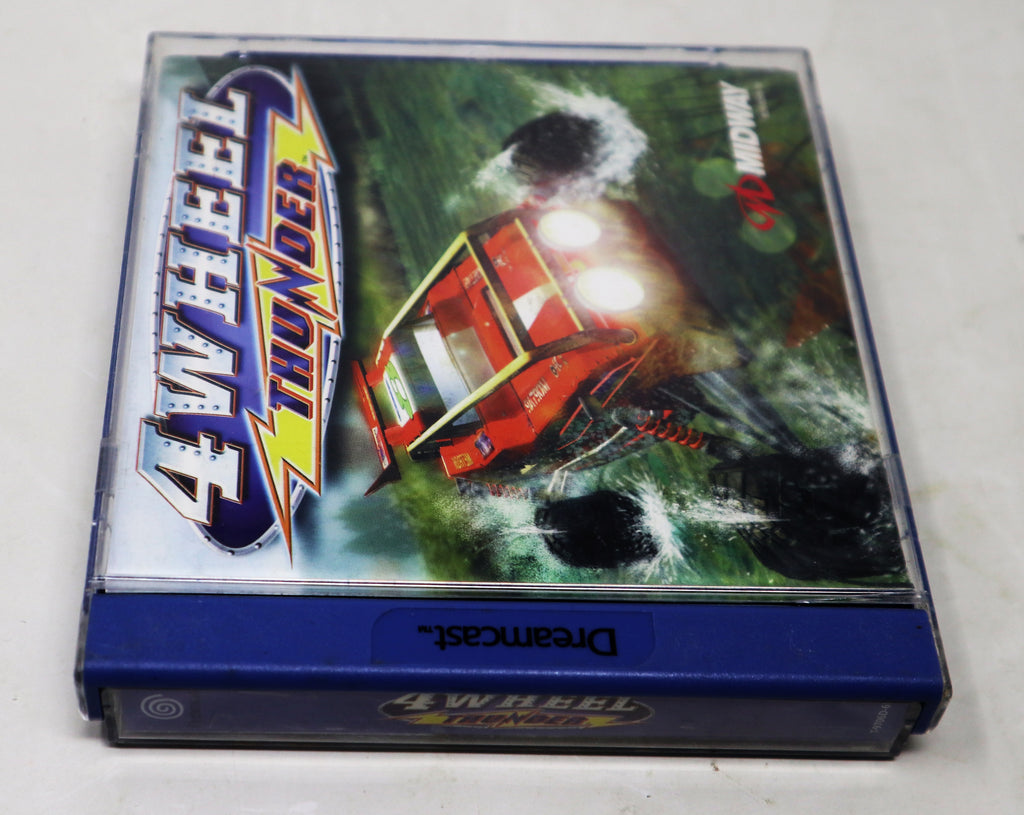 4 Wheel Thunder is a great Dreamcast game and comes in good/fair condition considering its age and complete, as shown. The jewel case has some wear with a crack/scratch on the back and lots of light surface scuffs/scratches. The front cover has some creasing. It is printed with 'Sega Enterprises, Ltd.', 'Midway Games Limited' and '2000 Kalisto Entertainment' on the back. The CD has been tested and is fully working and in good condition considering its age with some surface scratches/scuffs/marks. The booklet is present and in good shape, as shown. 4 Wheel Thunder is a fantastic game to play, displays nicely and is a must for any Sega or retro gaming fan.