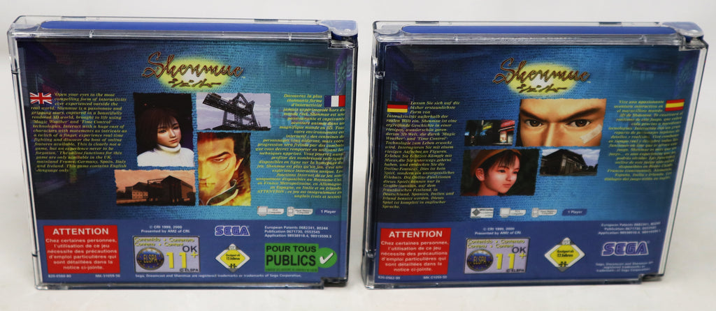 One of the jewel cases is in good condition considering its age with some surface scratches/scuffs and the other one has some broken/missing pieces on the CD holders (so they fall out), plus surface scratches/scuffs, as shown. Both booklets are present with one in good shape and the other has tears /creasing on the front cover. The Discs are also in good condition considering their age with some surface marks/scuffs, as shown. All Discs have been tested and are fully working. Shenmue is a fantastic game to play and is a must for any Sega, Manga / Anime or retro gaming fan.