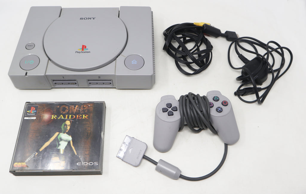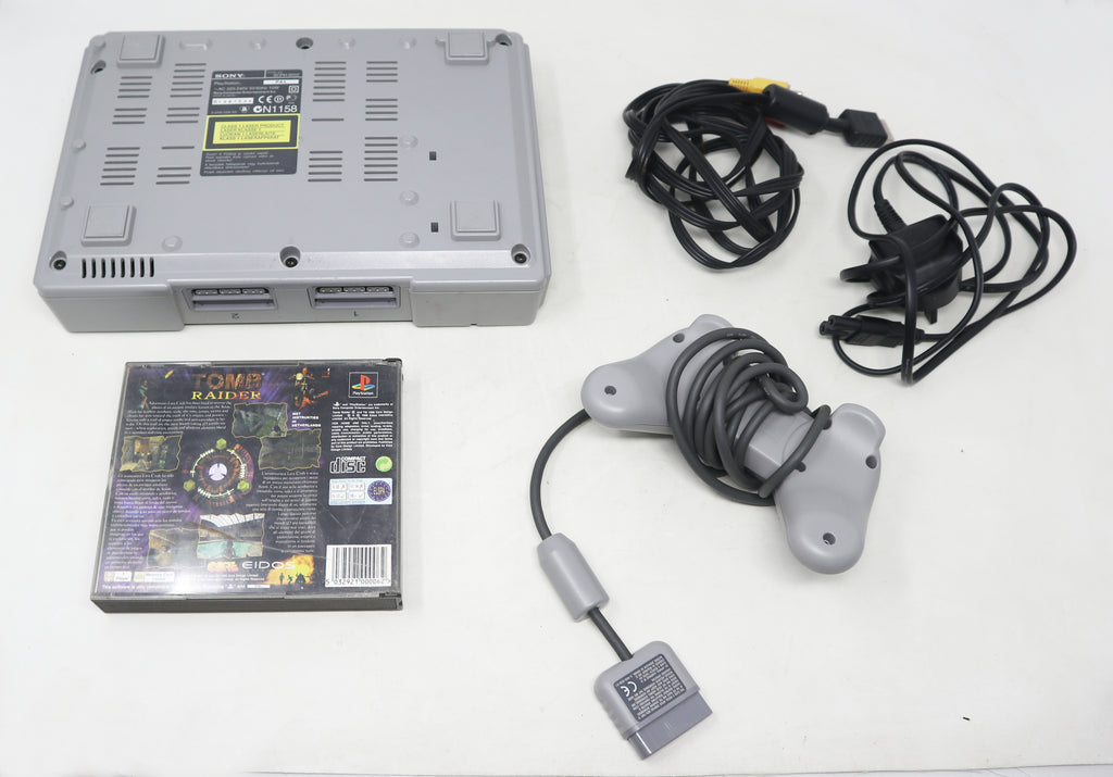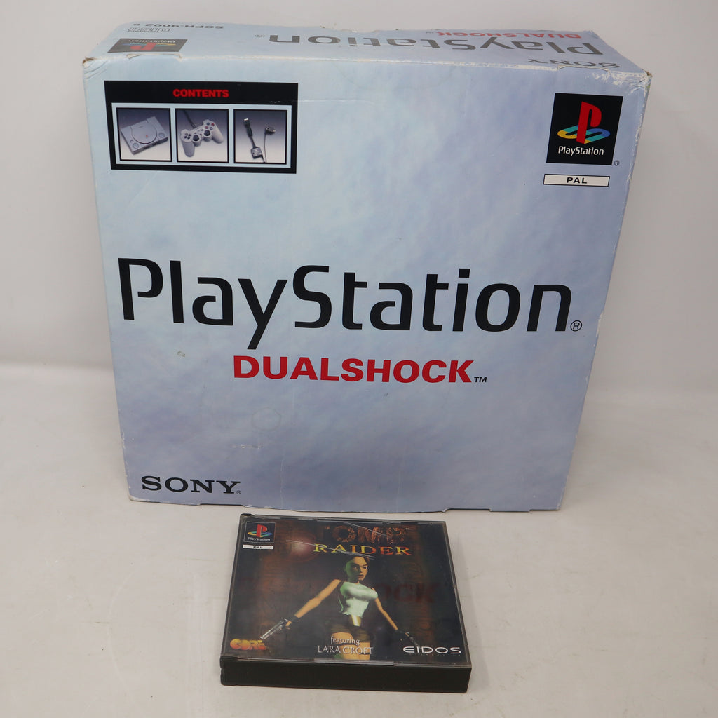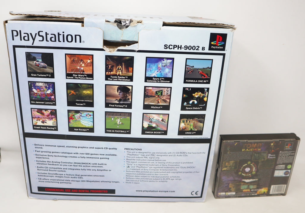 Vintage Sony Playstation 1 PS1 Pal Console Boxed SCPH-9002, Controller + Tomb Raider Video Game Lot Bundle Retro