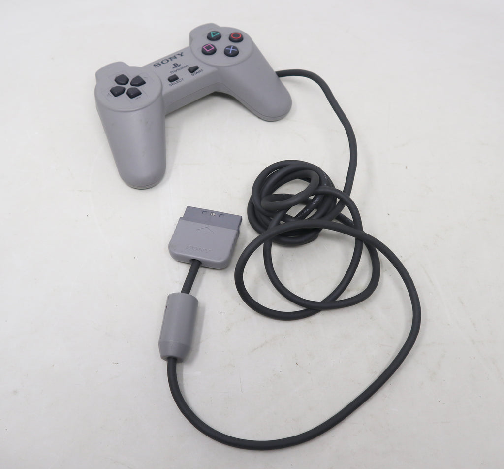 The PS1 is a cool vintage Console. It comes in good condition considering its age with some light surface scratches/scuffs/marks and something which rattles around inside when turned upside down, as shown in the photos. It is fully working and includes one Control Pad (which isn't a Dualshock version, as advertised on the box), the cables needed to play, plus the game Tomb Raider, which is a fun game to play. Please note that the game Cases has cracks and lots of scratches/scuffs. It includes its original Instruction Manual, which has some creasing. The CD has some surface scratches/scuffs/marks, as shown.