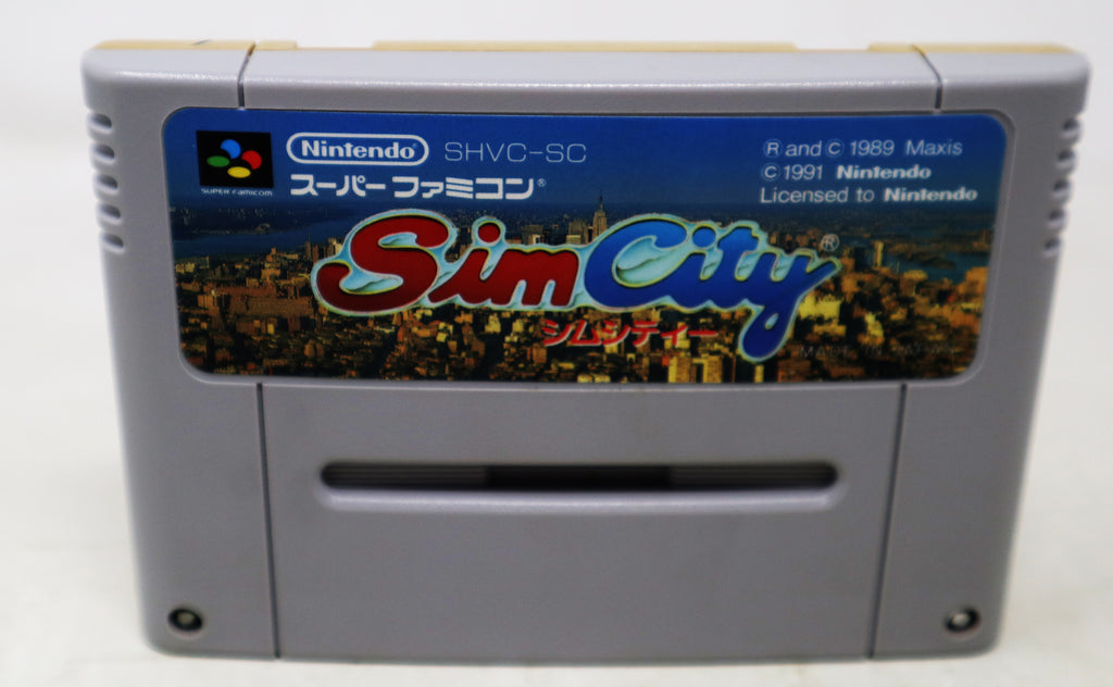 The front label on the Cartridge is printed with '1991 Nintendo', '1989 Maxis' and 'SHVC-SC'. The label is printed in Japanese text and 'Super Famicom Cassette Model No. SHVC-006'. The Cartridge itself is stamped with Pat. Pend. Made In Japan'. The game has been tested on a Retron Console and is fully working. Sim City is a fantastic game to play, displays well and is a must for any Nintendo or retro gaming fan.