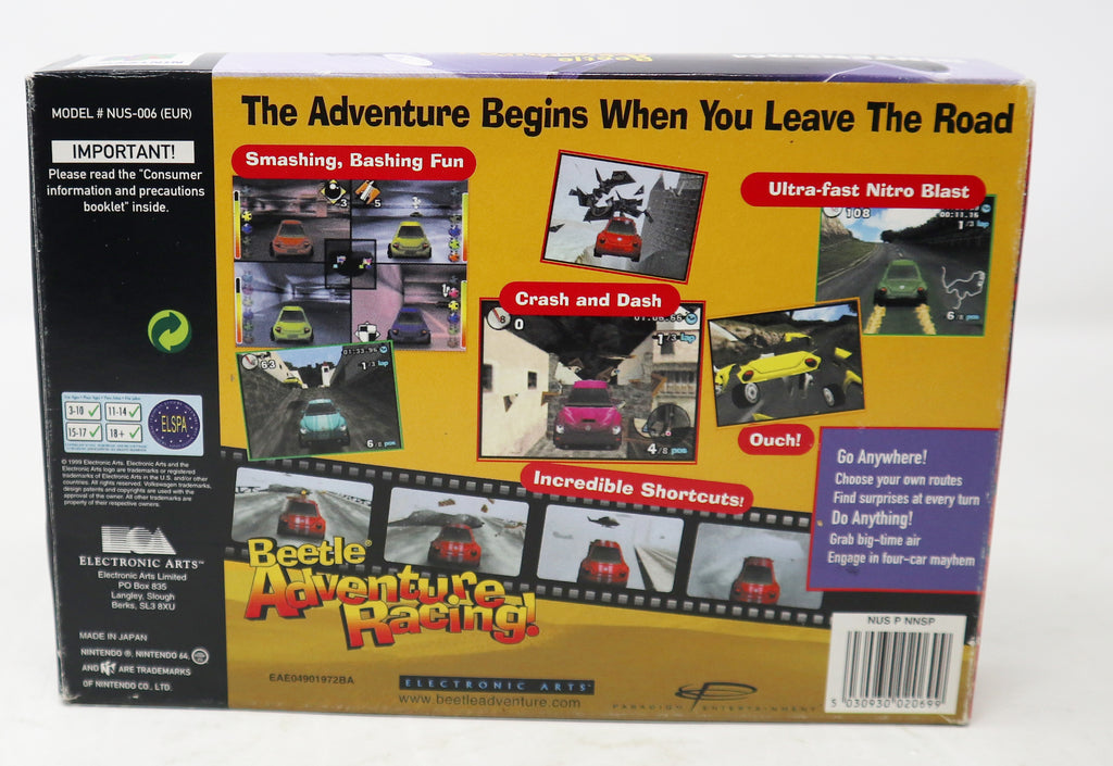 Vintage 1999 90s Nintendo 64 N64 Beetle Adventure Racing! Cartridge Video Game Boxed Pal Version 1-4 Players Retro