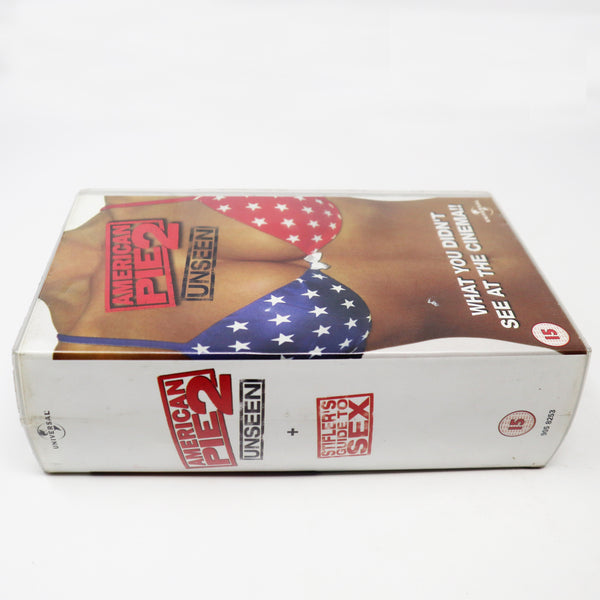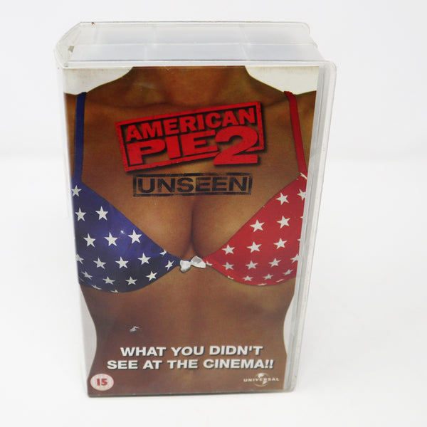 American Pie 2 Unseen comes complete and in good condition considering its age with its original Case (which has a crack in the top centre of the spine and some surface scratches/scuffs to the outer plastic) and Tape, as shown. The back cover is printed with '2002 Universal Studios'. This VHS displays nicely and is a must for any American Pie, Jason Biggs or Comedy fan.