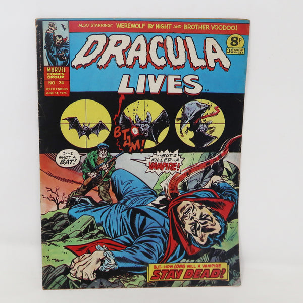 Vintage 1975 70s Marvel Comics Dracula Lives Comic Book No. 34 Issue Rare Retro