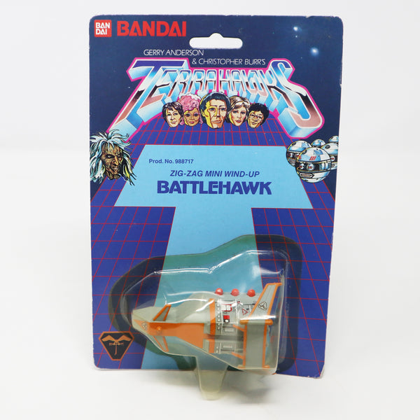 Vintage 1983 80s Bandai Gerry Anderson & Christopher Burr's Terrahawks Battlehawk Zig-Zag Mini Wind-Up Space Vehicle Prod. 988717 Carded MOC