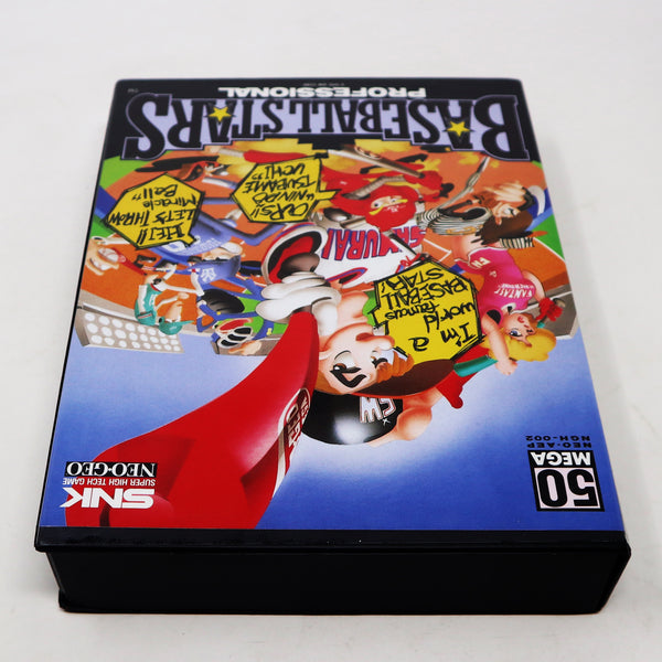 Baseball Stars Professional is a great vintage video game and is in new, unused condition and sealed at the side, as shown. The plastic covering on the Case has some light surface scratches and scuffs. Please note the game cartridge hasn't been tested on a Neo-Geo AES Console, due to the Cartridge being sealed inside. The case is printed with '1990 SNK Corp.' on the front. Baseball Stars Professional displays nicely, is rare to find sealed and is a must for any Neo-Geo AES or retro gaming fan.