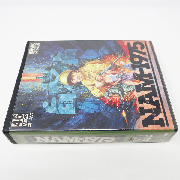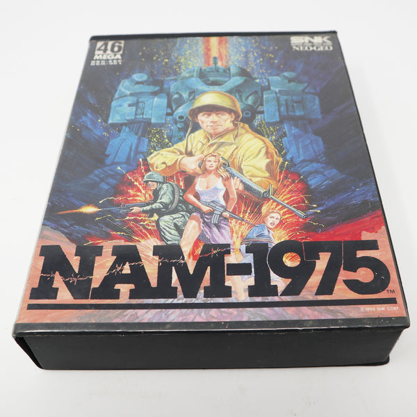 Nam-1975 is a great vintage video game. It is in good working condition with some light surface scratches and scuffs on the cartridge. The outer case has some scratch marks on the plastic at the back and some wear to the paper insert at the top back, as shown. The inner tray has some splits/cracks and pieces missing. These are common faults. The game cartridge has been tested on a Neo-Geo AES Console and is fully working. The case is printed with '1990 SNK Corp.' on the front. Please note Nam-1975 User's Manual is missing. The game displays nicely and is a must for any retro gaming fan.