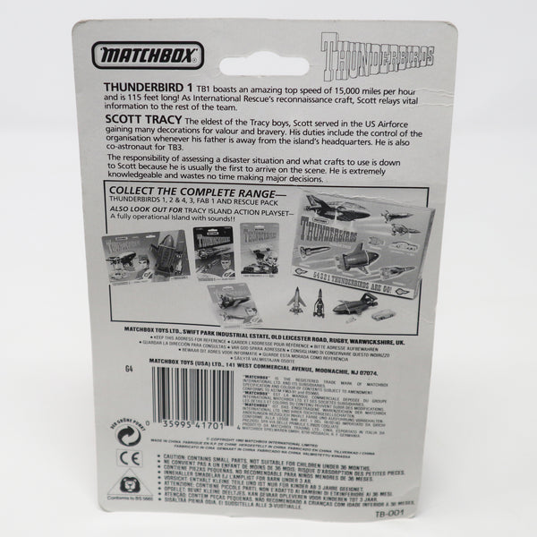 Vintage 1992 90s Matchbox Thunderbirds Thunderbird 1 Pilot: Scott Tracy Vehicle Carded MOC