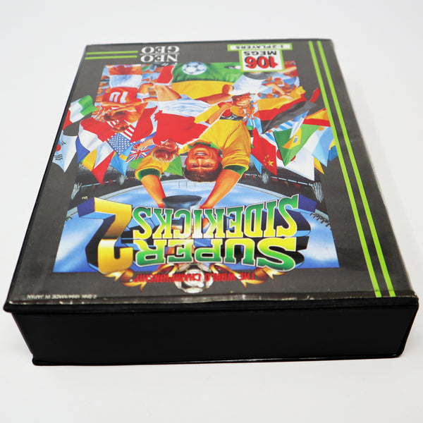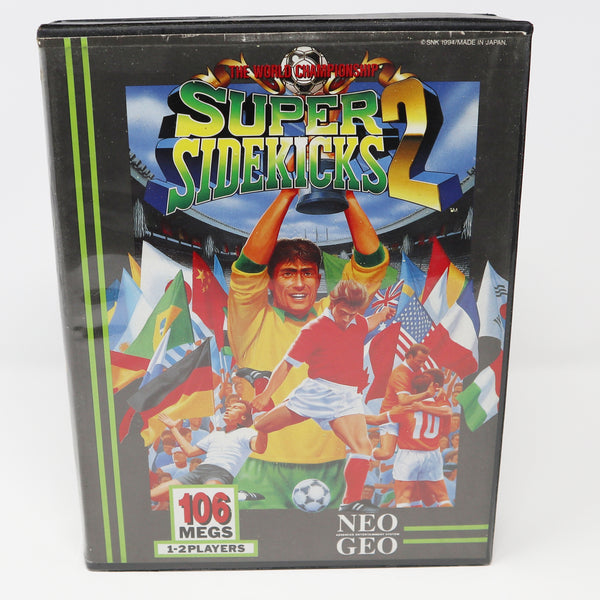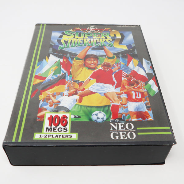 Super Sidekicks 2 is a great vintage video game and is in good working condition with some light surface scratches/scuffs to the cartridge, as shown. The outer case has some edge wear to the paper insert. The inner tray has some splits. These are common faults. The game cartridge has been tested on a Neo-Geo AES Console and is fully working. The case is printed with 'SNK 1994/Made In Japan' on the front. The User's Manual is also included and is in good shape. Super Sidekicks 2 displays nicely and is a must for any retro gaming fan.