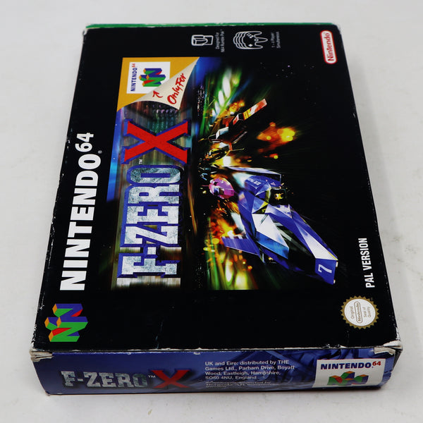 F-Zero X is a great vintage Video Game. The Cartridge is in good condition considering its age and the label is still intact. The outer box is present and is also in good condition considering its age with some creasing, corner/edge wear and surface scratches/scuffs/marks. It is printed with '1998 Nintendo Co. Ltd.' and 'Made In Japan'.