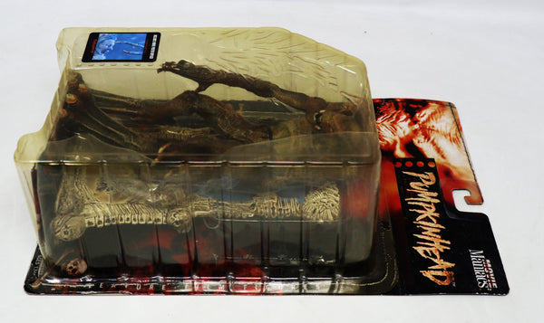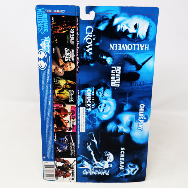 Pumpkinhead was a Movie Maniacs Series 2 release by McFarlane Toys in 1999. He comes mint on partly sealed card, but never removed or played with. The card in good condition with some creases and bending and paper tears where the bubble has lifted along the bottom and one side. The bubble is in good condition with slight yellowing, a few dings at the bottom corners and light scuffs and surface scratches. Made in China. Suggested Ages 13 and Up. Pumpkinhead displays nicely and is a must for any Movie Maniacs or Horror fan.