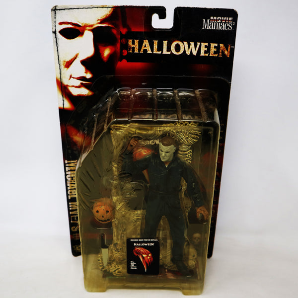 Halloween's Michael Myers was a Movie Maniacs Series 2 release by McFarlane Toys in 1999. He comes mint on sealed card, never removed or played with. The card in good condition considering its age with some corner/edge wear, creasing, bending/splitting at the corners, plus surface scuffs. The bubble is in good condition and clear, but yellowed with some dings and slight crushing at one bottom corner, light scuffs and surface scratches. Made in China. Suggested Ages 13 and Up. Michael Myers displays nicely and is a must for any Halloween or Horror fan.